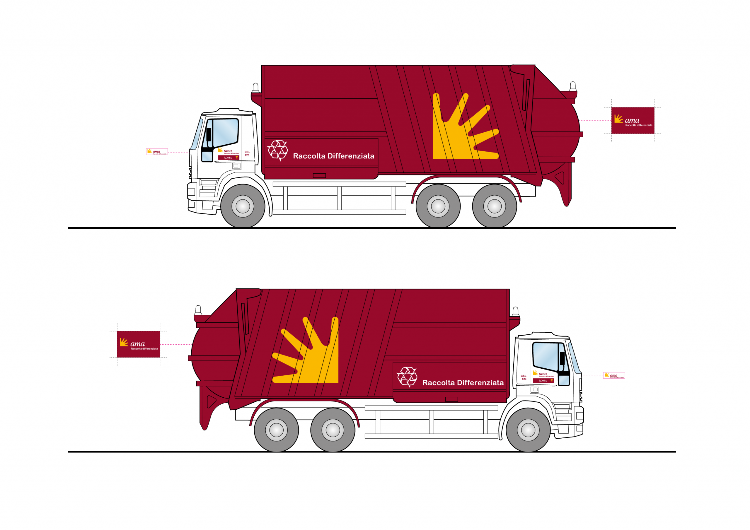 Il progetto di rebranding nasce dall’esigenza del Comune di Roma di coordinare e rendere più omogenea la propria identità istituzionale, in linea con il suo profilo di capitale internazionale. AMA, in questo quadro, ha assunto un ruolo strategico, non più solo come operatore ecologico, ma come tutore dell’ambiente. Il logo unifica due simboli forti: la mano, a testimonianza che l’azienda è fatta di persone (labour intensive), e il sole giallo, richiamo all’energia, all’ambiente e alla sostenibilità. L’identità visiva è stata armonizzata al brand Roma Capitale grazie all’uso del color porpora, che lega AMA alla città in un sistema unitario. L’intervento ha coinvolto anche la brand architecture dei diversi dipartimenti, rendendo più coerente la percezione delle diverse attività aziendali.