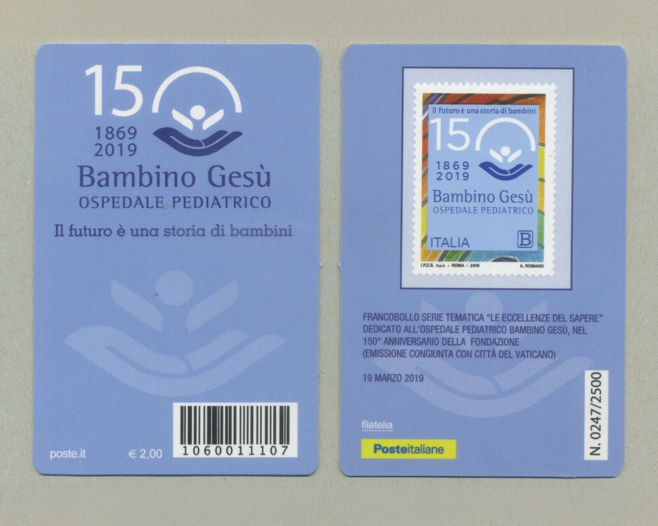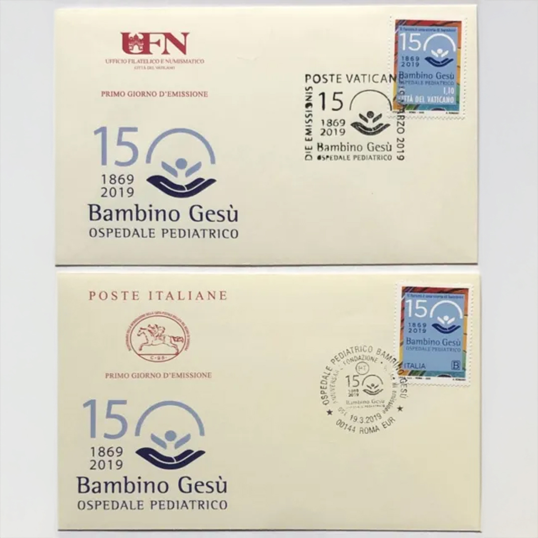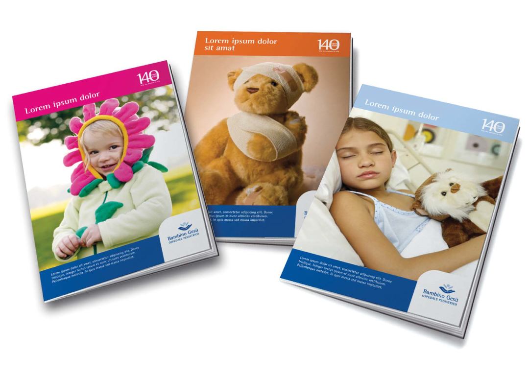 Inarea è stata coinvolta anche nella realizzazione dei marchi celebrativi del 140° e 150° anniversario dell’istituzione. Quello dei 140 anni incorpora nello “zero”, come in una cornice, l’anno di fondazione (1869) e l’anno della celebrazione, ponendo in risalto la lunga tradizione. Il payoff “Vite che aiutano la vita” lega il passato al presente, enfatizzando la continuità della missione e l’impatto vitale dell’ospedale. Il logo dei 150 anni, invece, riprodotto anche in due francobolli, uno emesso dalla Santa Sede e uno dalla Repubblica Italiana, interseca lo zero con il logo dell’Ospedale, aggiungendo l’evocativo e intenso payoff “Il futuro è una storia di bambini”, unendo all’eredità storica la proiezione al futuro.